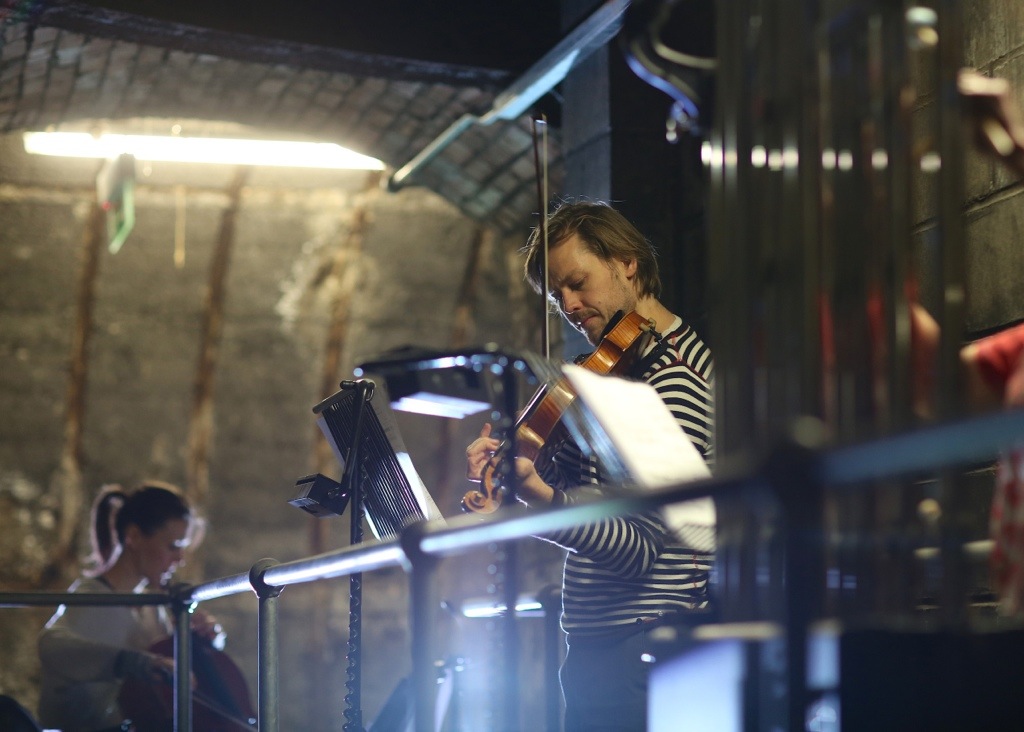 I don’t recall what I did for my fifth birthday but I certainly will remember the London Contemporary Orchestra’s fifth birthday. I visited the abandoned Aldwych Underground Station on the 24th May to experience behind the scenes of the first of the London Contemporary Orchestra’s ‘Imagined Occasions’ series (performed that evening). Helen Scarlett O’Neill and Harry Ross have produced a series of site specific, immersive performances and “the series seeks to engage its audience in a subtle participatory narrative, in which the audience are observers, creators, protagonists and the observed”. These events encourage us to question our urban existence, particularly the ‘voyeuristic and dissociated’ nature of public transport. One had a sense that this would be an intriguing event; as we heard the opening performance of The Viola in Life 3 (Feldman) in the Ticket Hall I slowly became less aware of the sirens and traffic sounds of the nearby Strand. One became immersed in the subtle timbres and delicate playing of the Feldman, with Adès’ Darkness Visible to follow. Both works seemed ideal for the space, and I could feel the ticket hall darken through the performance.