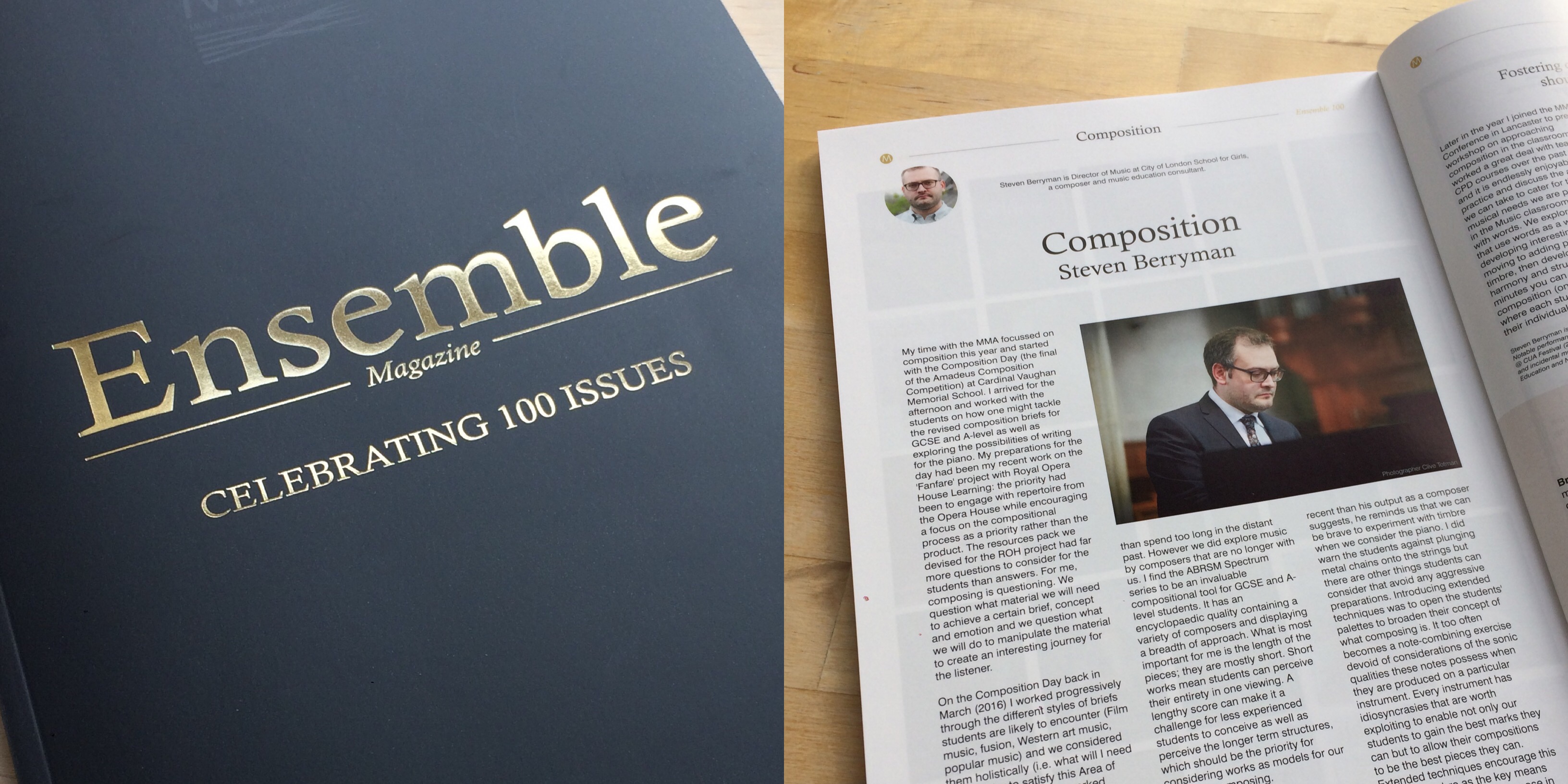My year with the MMA focussed on composition this year and started with the Composition Day (the final of the Amadeus Composition Competition) at Cardinal Vaughan Memorial School. I arrived for the afternoon and worked with the students on how one might tackle the revised composition briefs for GCSE and A-level as well as exploring the possibilities of writing for the piano. My preparations for the day had been my recent work on the ‘Fanfare’ project with Royal Opera House Learning: the priority had been to engage with repertoire from the Opera House while encouraging a focus on the compositional process as a priority rather than the product. The resources pack we devised for the ROH project had far more questions to consider for the students than answers. For me, composing is questioning. We question what material we will need to achieve a certain brief, concept and emotion and we question what we will do to manipulate the material to create an interesting journey for the listener.