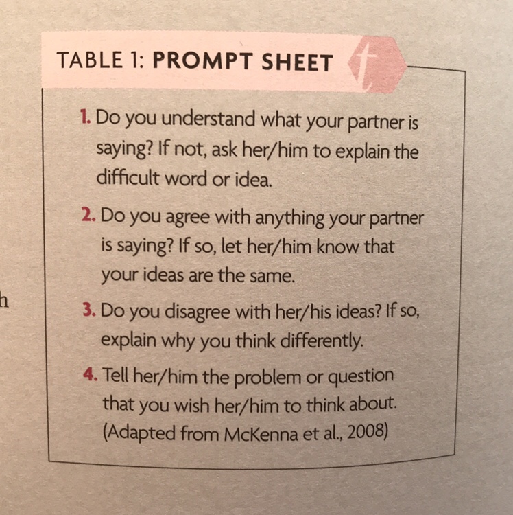 Thought: I wondered if an activity where colleagues would record a section of their lessons where talk was taking place, and we could listen ticking off the type of talk we hear. We could probably then work out what type of talk predominated and if we were ever reaching the dialogue stage.
